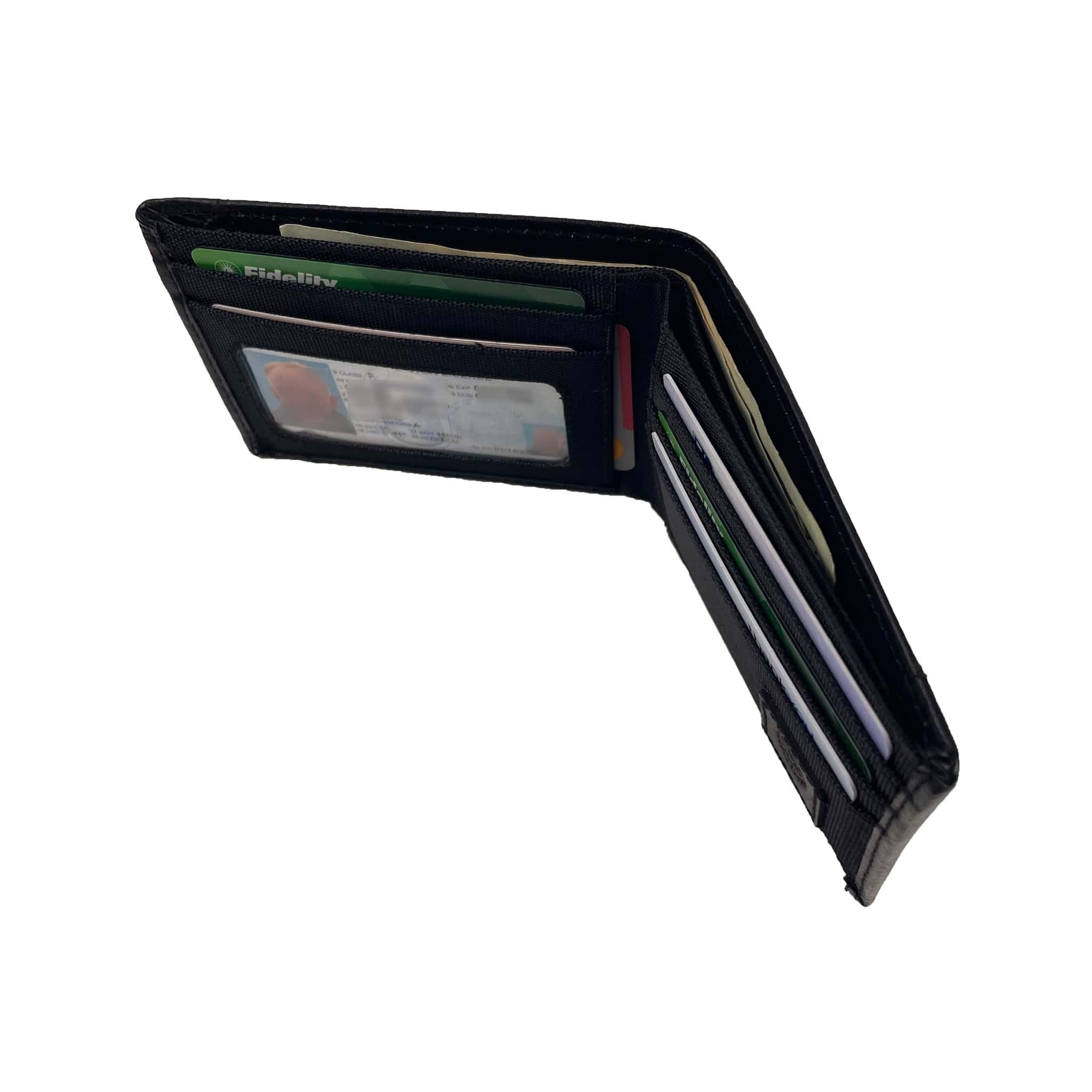 Slim Nylon Bifold with Leather Trim - Black