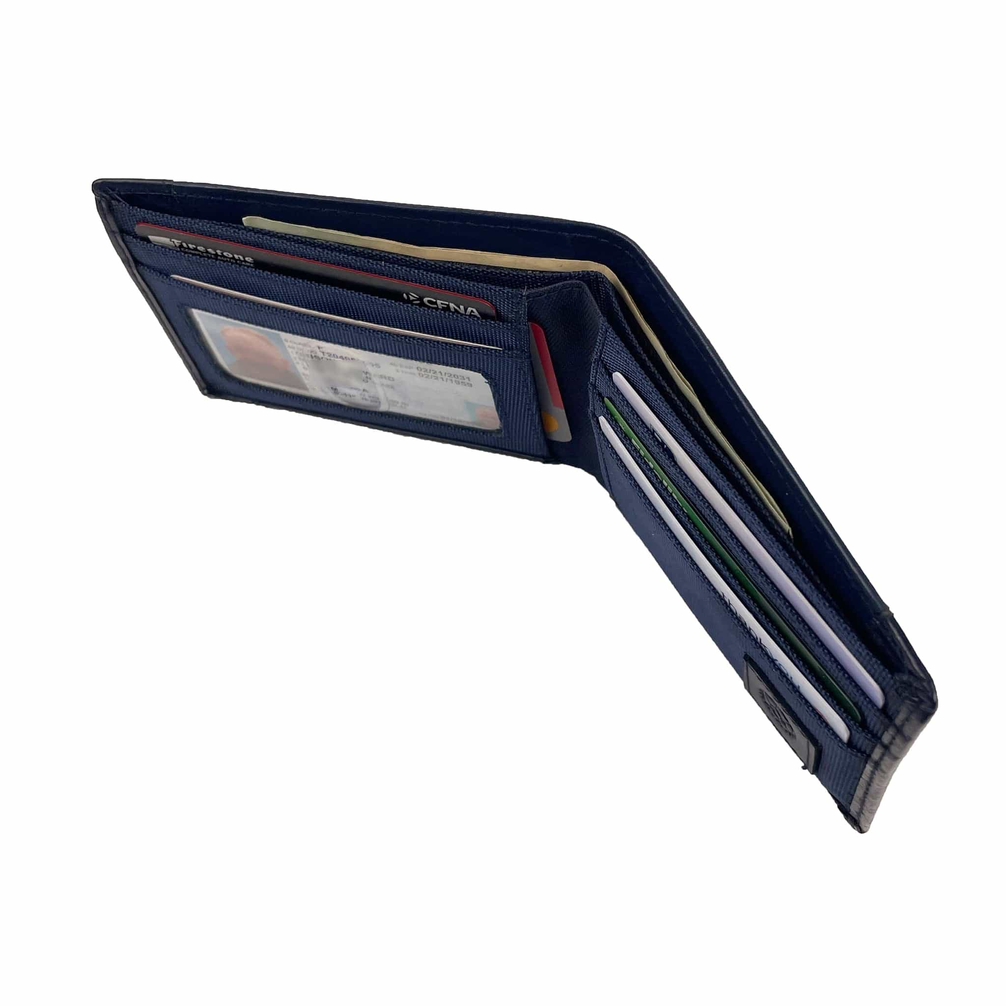 Slim Nylon Bifold with Leather Trim - Navy